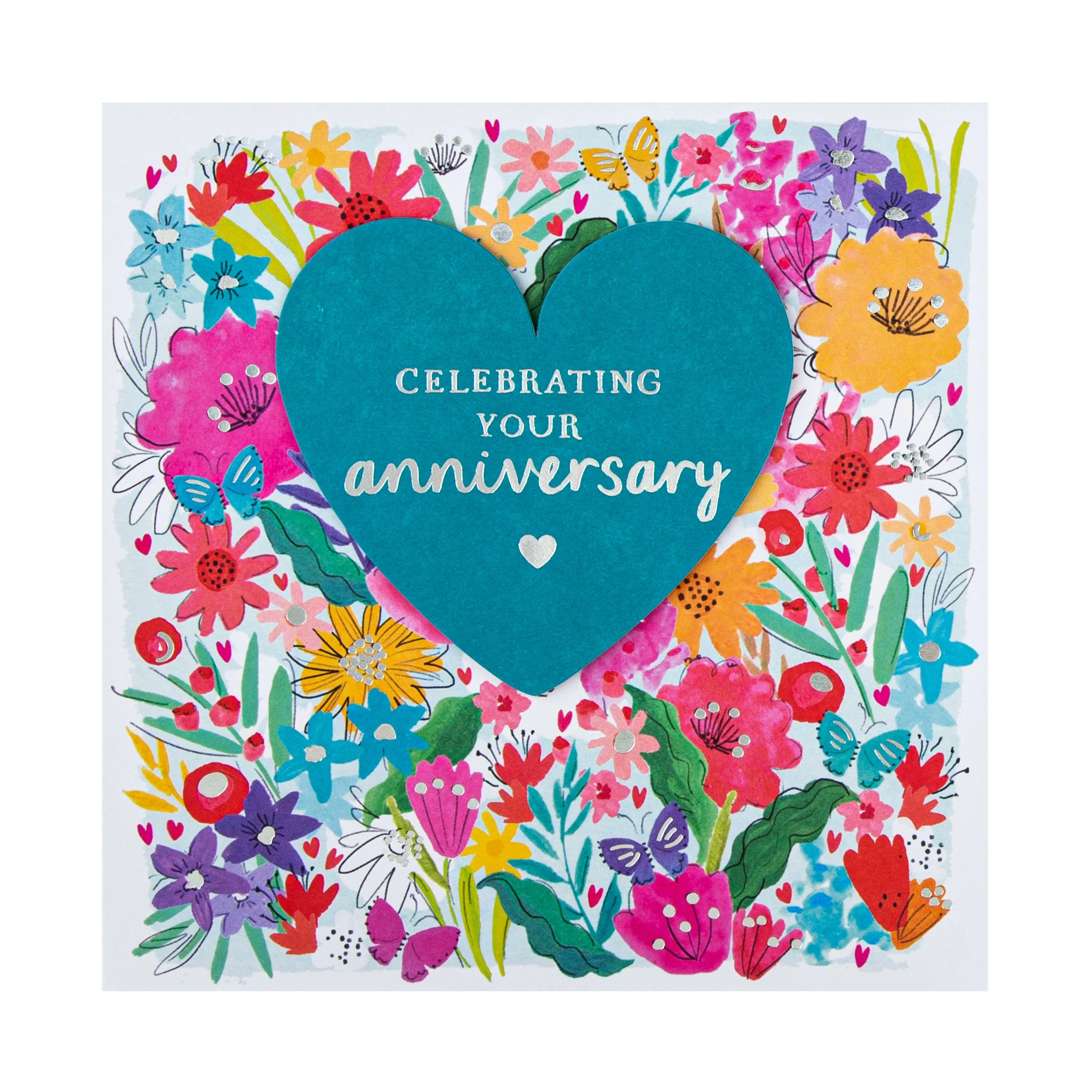 Anniversary Card - Floral Design with Heart Attachment